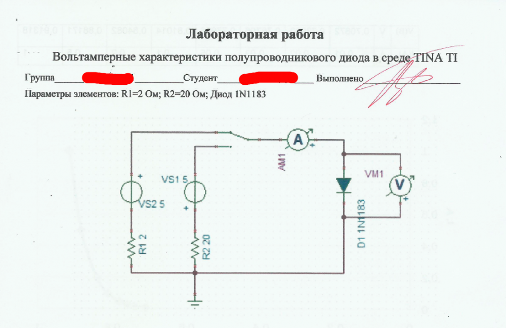 Лабораторная работа 1: Вольтамперные характеристики полупроводникового диода в среде TINA-TI