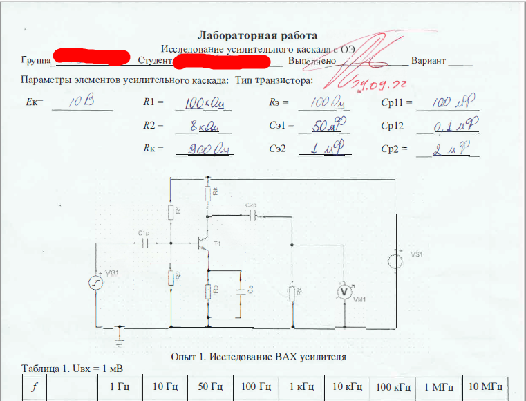 Лабораторная работа 2: Исследование усилительного каскада с общим эмиттером (ОЭ)