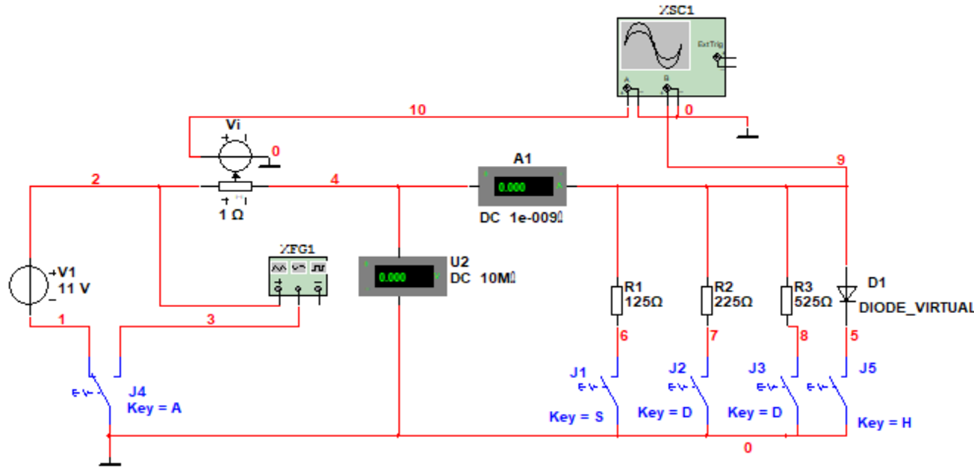 Виртуальные эксперименты проводятся на базе пакета MultiSim 10. Используются библиотечные модели компонентов (элементов схем) и контрольно-измерительных приборов.