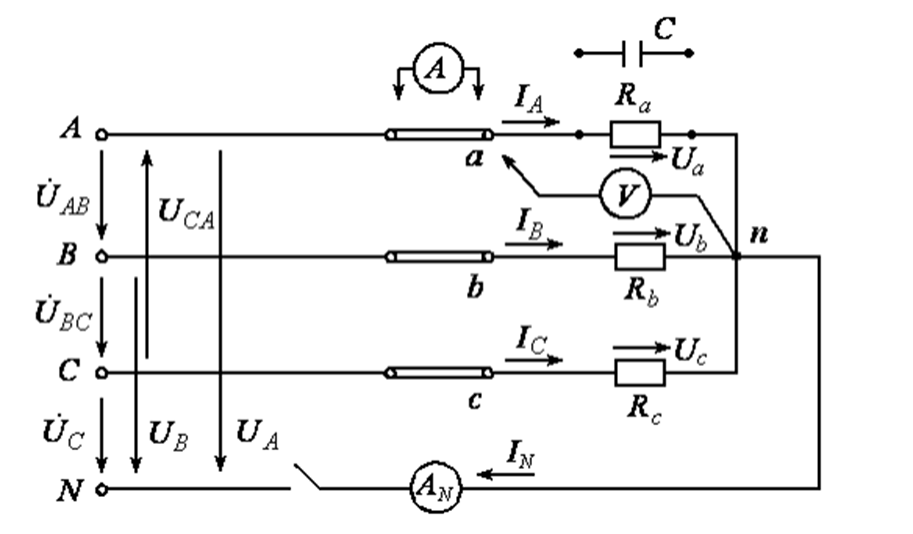 Главная » Учебные материалы » Электротехника (ЭлТех) » Лабораторные работы » ТПУ » Исследование трехфазной цепи при соединении фаз приемников звездой