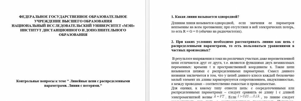Для студентов НИУ «МЭИ» по предмету Электротехника (ЭлТех)Контрольные вопросы к теме " Линейные цепи с распределенными параметрами. Линии с потерями."Контрольные вопросы к теме " Линейные цепи с распределенными параметрами. Линии с потерями."