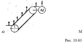 10-63. Эскалатор метро (рис. 10.63, а) приводится в движение асинхронным трехфазным двигателем с фазным ротором, естественная механическая характеристика которого изображена на рис. 10.63, б. Частота вращения двигателя при подъеме пассажиров и момент, развиваемый двигателем, равны n1=900 об/мин и М1. Определить частоту вращения двигателя при спуске того же количества пассажиров при условии, что момент, обусловленный силами трения в звеньях механизма эскалатора, при подъеме и спуске одинаков и равен Mтр и двигатель работает в режиме генераторного торможения. Указать правильный ответ.