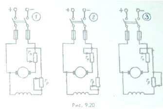 В какой из схем рис. 9.20 движки реостатов перед пуском двигателя установлены правильно?