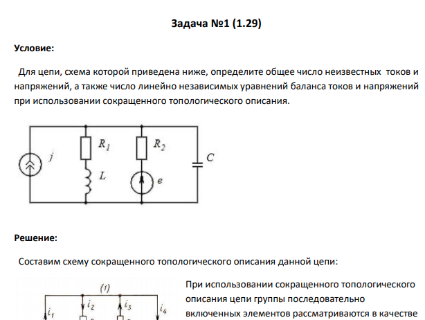 Для цепи, схема которой приведена ниже, определите общее число неизвестных токов и напряжений, а также число линейно независимых уравнений баланса токов и напряжений при использовании сокращенного топологического описания.