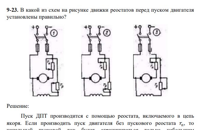 В какой из схем на рисунке движки реостатов перед пуском двигателя установлены правильно?