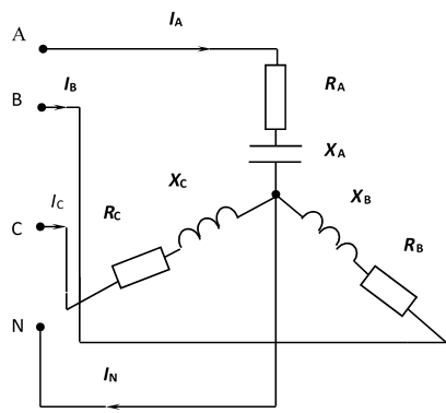 Главная » Учебные материалы » Электротехника (ЭлТех) » Решения задач » Несколько классов/семестров » В трёхфазную четырехпроводную цепь с симметричным линейным напряжением UЛ = 220 В включены звездой сопротивлением RA = 6 Ом, RB = 7 Ом, RC = 9 Ом, XA = 7 Ом, XB = 6 Ом, XC = 11 Ом. Определить фазные и линейные токи, ток нейтрального провода, мощност