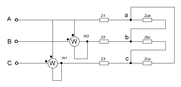 К симметричному трехфазному источнику подключена трехфазная несимметричная нагрузка соединенная треугольником (рис. 3). Сопротивления проводников линии Zл. Необходимо: