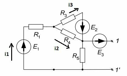 Для заданной в соответствии с номером варианта схемы сложной электрической цепи с несколькими источниками постоянного напряжения и известным из таблицы 2 параметрами элементов цепи: рассчитать токи всех ветвей и напряжения на всех резисторах, составив и решив уравнения Кирхгофа, проверить правильность полученных результатов по выполнению баланса мощности, начертить схему замещения двухполюсника относительно выделенных зажимов 1-1’ и вычислить ее параметры, определить сопротивление нагрузки Rн, при подключении которой к двухполюснику в ней выделиться максимальная мощность Pнmax, рассчитать Pнmax.