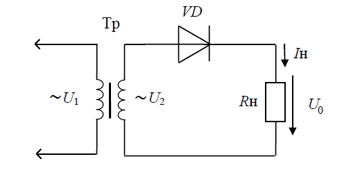 Главная » Учебные материалы » Электротехника (ЭлТех) » Решения задач » Несколько классов/семестров » В схеме однофазного однополупериодного выпрямителя U0=52 В, сопротивление RН=400 Ом. Найти ток в нагрузке и напряжение на зажимах вто-ричной обмотки.
