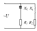 Разветвленная цепь переменного тока состоит из двух параллельных ветвей, содержащих активные сопротивления R1, R2 и реактивные ХС и XL.