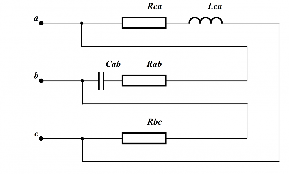 1. Начертить развернутую схему трехфазной электрической цепи с учетом характера заданных элементов в каждой фазе.