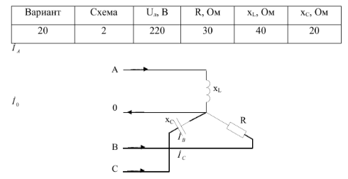 Задача 4. Расчет трехфазных цепей при соединении нагрузки в четырехпроводную звезду