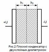 Двухслойный диэлектрик прямоугольной формы с размерами для каждого слоя a × b и толщиной h1 и h2, служит изолятором между двумя электродами (рис. 2). Напряжение подводится к граням ab, покрытыми слоями металла. Относительная диэлектрическая проницаем