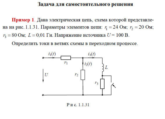 Задача: Расчёт переходных процессов в линейных электрических цепях