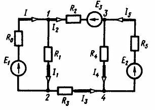 Главная » Учебные материалы » Электротехника (ЭлТех) » Решения задач » Несколько классов/семестров » Номер 1.48 » Определить общий ток I и токи I1–I5 в ветвях электрической цепи постоянного тока (рис. 1.48). ЭДС источников питания: Е1=32 В; Е2=120 В; Е3=10 В, внутреннее сопротивление источника Е1, R0=2 Ом (внутренним сопротивлением других источников пренебречь).