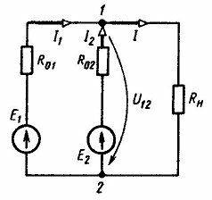 Для студентов по предмету Электротехника (ЭлТех)Два источника постоянного тока с ЭДС Е1=Е2=115 В и внутренними сопротивлениями R01=0,2 Ом и R02=0,4 Ом включены параллельно на нагрузку Rн=5 Ом (рис. Два источника постоянного тока с ЭДС Е1=Е2=115 В и внутренними сопротивлениями R01=0,2 Ом и R02=0,4 Ом включены параллельно на нагрузку Rн=5 Ом (рис.