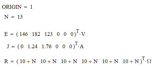 Задана схема электрической цепи и параметры отдельных элементов. Для удобства расчета параметры отдельных элементов сведены в матрицы. Требуется определить токи в ветвях схемы, напряжения на отдельных элементах, мощности отдельных источников и приемников энергии, проверить баланс мощностей.