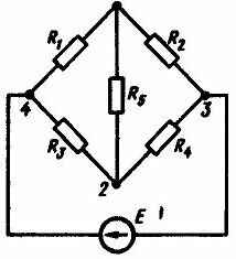 Методом эквивалентного генератора определить ток I5 в диагонали моста рис. 1.73, а. Сопротивление резисторов: R1=20 Ом; R2=40 Ом; R3=30 Ом; R4=10 Ом; R5=50 Ом, ЭДС источника питания Е=120 В.