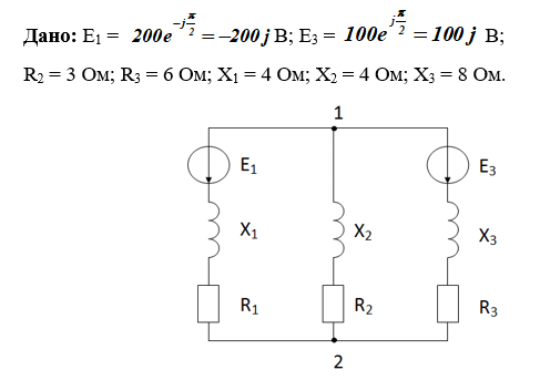 Для электрической цепи переменного тока с частотой равной 50 Гц определить: полные сопротивления Z ветвей, токи I в ветвях и напряжения U на элементах электрической цепи, составить баланс активных мощностей. Комплексные Е или мгновенные i значения ЭДС источников питания, сопротивления R резисторов и реактивных сопротивления элементов электрической цепи, а также предлагаемые методы решения задачи 2 для соответствующего варианта задания приведены в таблице.