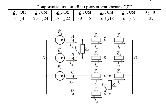 Для цепи с линейным напряжением Uл=660 В симметричного источника, сопротивлением фаз приемника