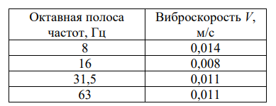 Заданы значения виброскорости локальной вибрации на нескольких частотах (табл. 1):