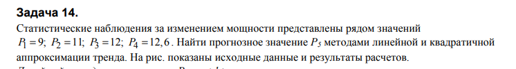 Найти прогнозное значение P5 методами линейной и квадратичной аппроксимации тренда. На рис. показаны исходные данные и результаты расчетов.
