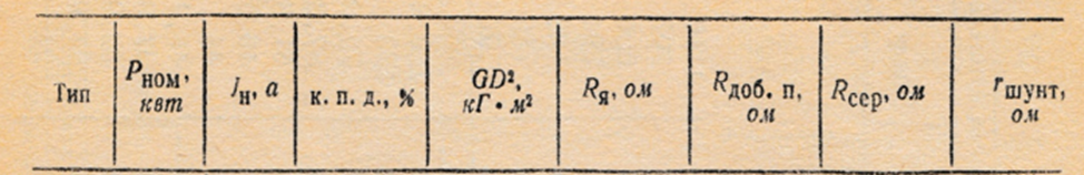 № | Тип двигат. | РН | UH. | nном | Rя + Rдоб.п. | rш | Rсер | JД | |