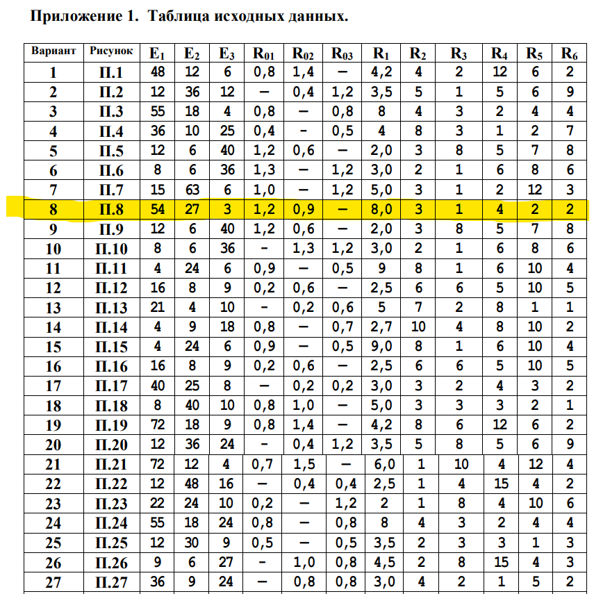 ДЗ 1: Расчет линейных цепей постоянного тока вариант 8