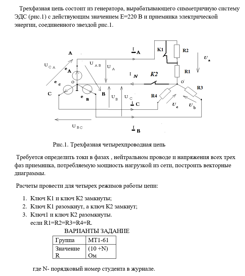 Для студентов МГТУ им. Н.Э.Баумана по предмету Электротехника и электроникаРасчет трехфазной цепиРасчет трехфазной цепи