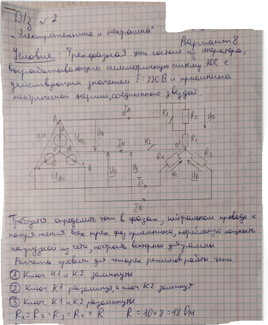 ДЗ 2: Расчет трехфазной цепи вариант 8