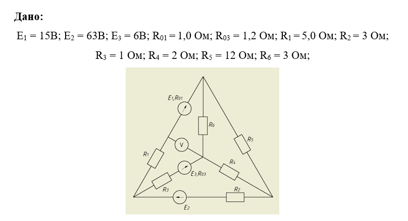 7. Определить показание вольтметра, указанного в заданной схеме электрической цепи.