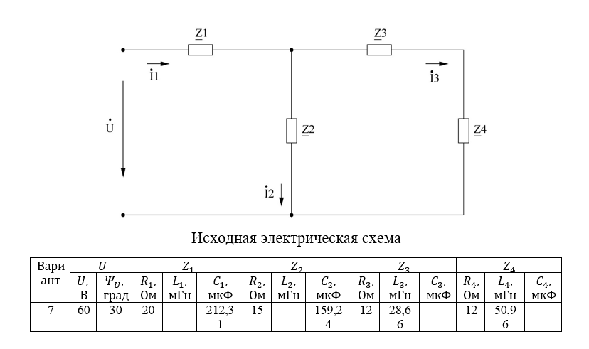 ДЗ 2: Расчет линейных цепей синусоидального тока вариант 7