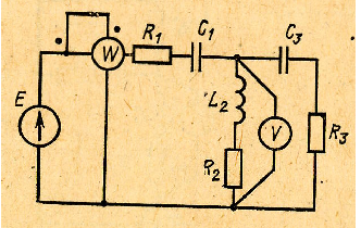 E = 220 В, f = 50 Гц, с1 = 637 мкФ, L2 = 15.9 мГн, С3 = 200 мкФ, R1 = 5 Ом, R2 = 10 Ом,
