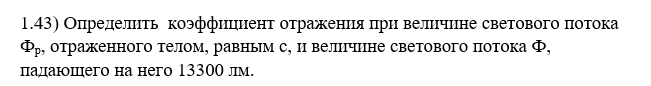 Определить коэффициент отражения при величине светового потока Фр, отраженного телом, равным с, и величине светового потока Ф, падающего на него 13300 лм.