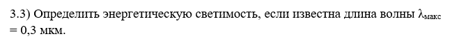 Определить энергетическую светимость, если известна длина волны λмакс = 0,3 мкм.