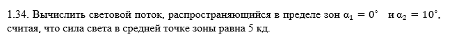 Вычислить световой поток, распространяющийся в пределе зон от 0 до 10 град, считая, что сила света в средней точке зоны равна 5 кд.