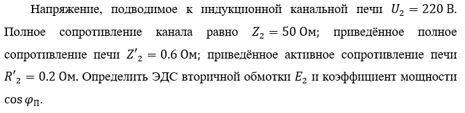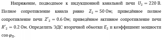 Полное сопротивление канала равно приведённое полное сопротивление печи приведённое активное сопротивление печи Определить ЭДС вторичной обмотки и коэффициент мощности