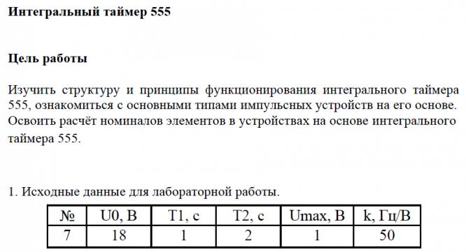 Лабораторная работа: Интегральный таймер 555 вариант 7