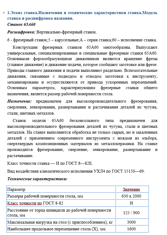 Конструкции фрезерных станков 65А60 многообразны. Выпускают универсальные, специализированные и специальные фрезерные станки 65А60. Основными формообразующими движениями являются вращение фрезы (главное движение) и движение подачи, которое сообщают заготовке или фрезе. Приводы главного движения и подачи выполняют раздельно. Вспомогательные движения, связанные с подводом и отводом заготовки к инструменту, механизированы и осуществляются от привода ускоренных перемещений. Основным параметром, характеризующим фрезерные станки общего назначения, является размер рабочей поверхности стола.