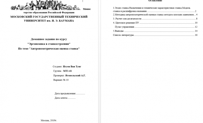 Для студентов МГТУ им. Н.Э.Баумана по предмету ЭргономикаАнтропометрическая оценка станка (вариант 10)Антропометрическая оценка станка (вариант 10)
