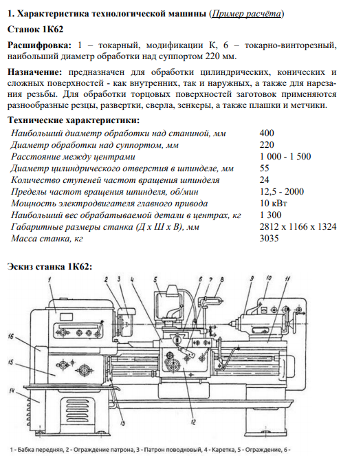ДЗ: Домашнее задания по курсу «Эргономика в станкостроении » Станок 1К62