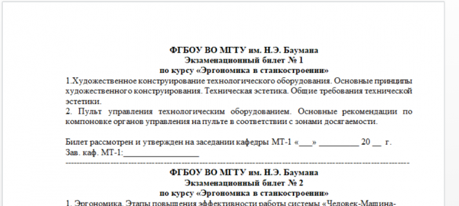 Для студентов МГТУ им. Н.Э.Баумана по предмету ЭргономикаБилеты (Экзамен)Билеты (Экзамен)