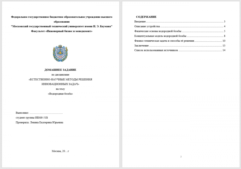 Для студентов МГТУ им. Н.Э.Баумана по предмету Естественнонаучные методы решения инновационных задач (ЕНМРИЗ)Домашнее задание на тему "Водородная бомба"Домашнее задание на тему "Водородная бомба"