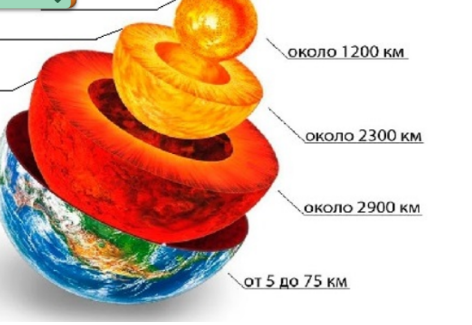 Земля имеет сложное внутреннее строение. Она разделена на оболочки, состоящие из веществ разной плотности.
