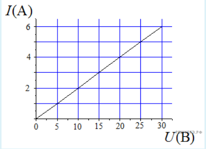 На графике изображена зависимость силы тока в проводнике от напряжения между его концами. Определите сопротивление проводника, используя формулу закона Ома: