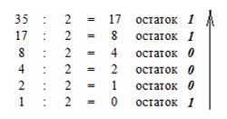 Например, при переводе десятичного числа 35 в двоичное число, получим (рисунок 1):