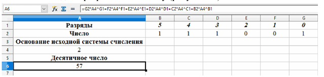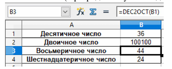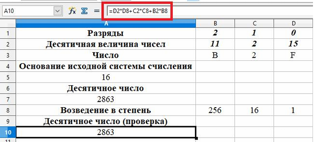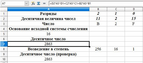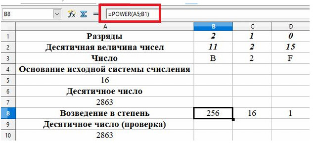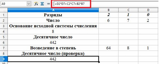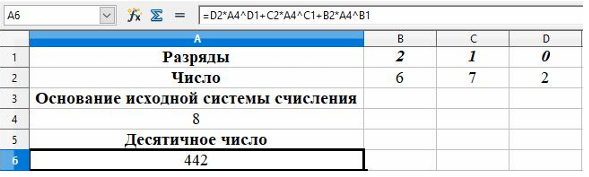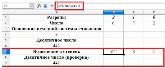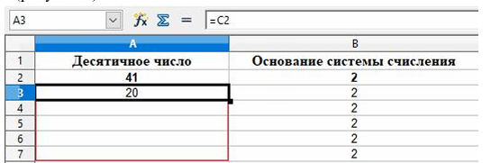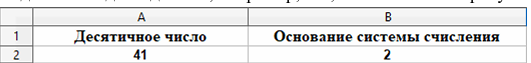 Ячейка С2 содержит основание новой системы счисления, то есть основание той системы счисления, в которую переводится заданное число