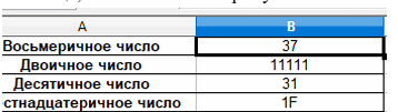 Главная » Учебные материалы » Этика » Домашние задания » ТулГУ » Несколько классов/семестров » Номер Практическая работа » Вариант 5 » Практическая работа № 5 Специальные возможности электронных таблиц (OOoCalc).Кодирование числовой информации