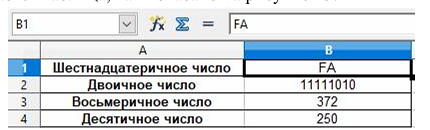 б) Достаточно в таблице, оформленной для задания 1, изменить основание системы счисления на 16 (содержимое ячейки В2).