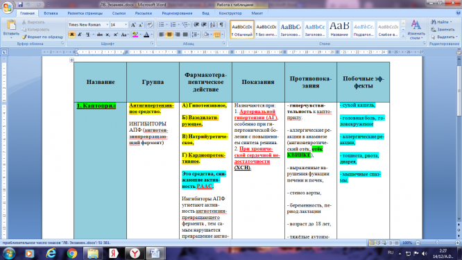 В данном файле написано около 50 основных препаратов, их фармакологическая группа, действие, показания к применению, противопоказания, побочные эффекты.